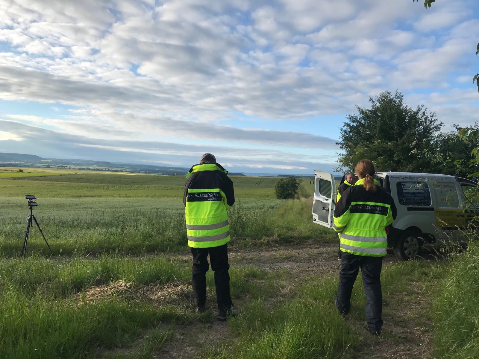 Trotz sorgfältiger Planung können wir nicht überall gleichzeitig im Einsatz sein. Der Landkreis ist groß, das Zeitfenster für die Kitzrettung kurz und behördliche Vorgaben setzen klare Rahmenbedingungen. Um dennoch möglichst viele Flächen abzusichern, arbeiten wir eng mit weiteren Teams zusammen.